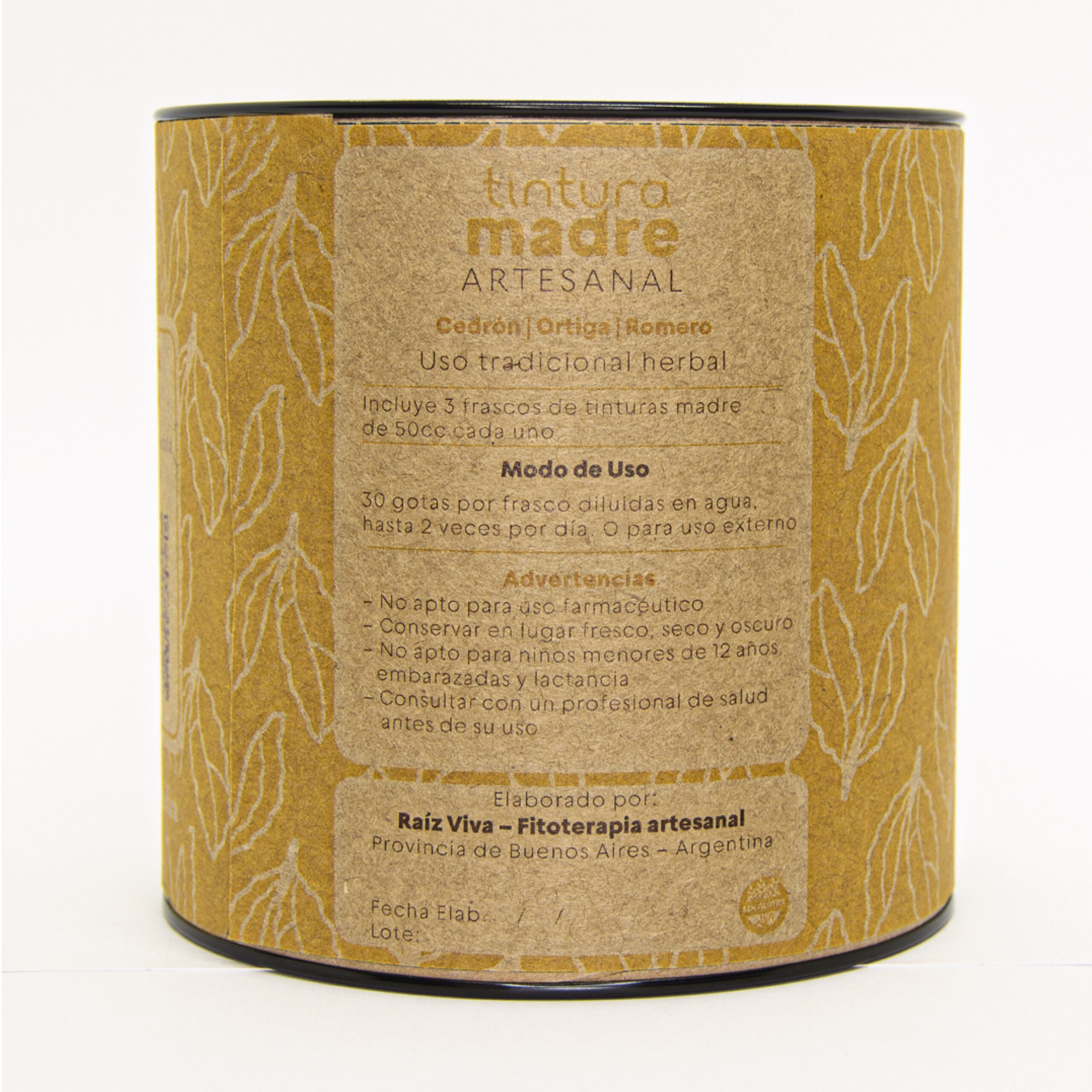 Lata Impulso con 3 tinturas madre de 50 cc: Cedrón, Romero y Ortiga, para revitalizar energía y claridad.