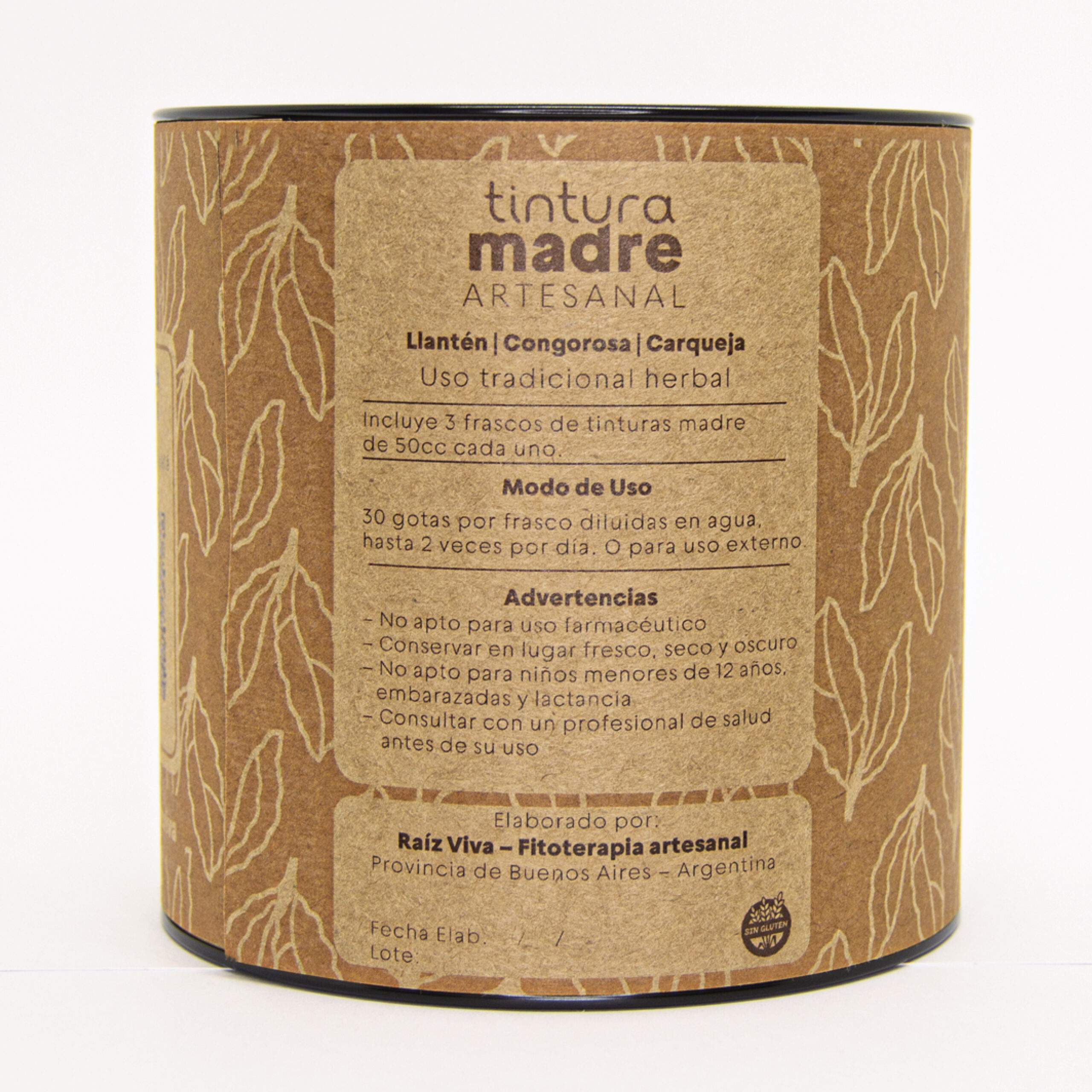 Lata Origen con 3 tinturas madre de 50 cc: Llantén, Congorosa y Carqueja, para depurar y volver a lo esencial.